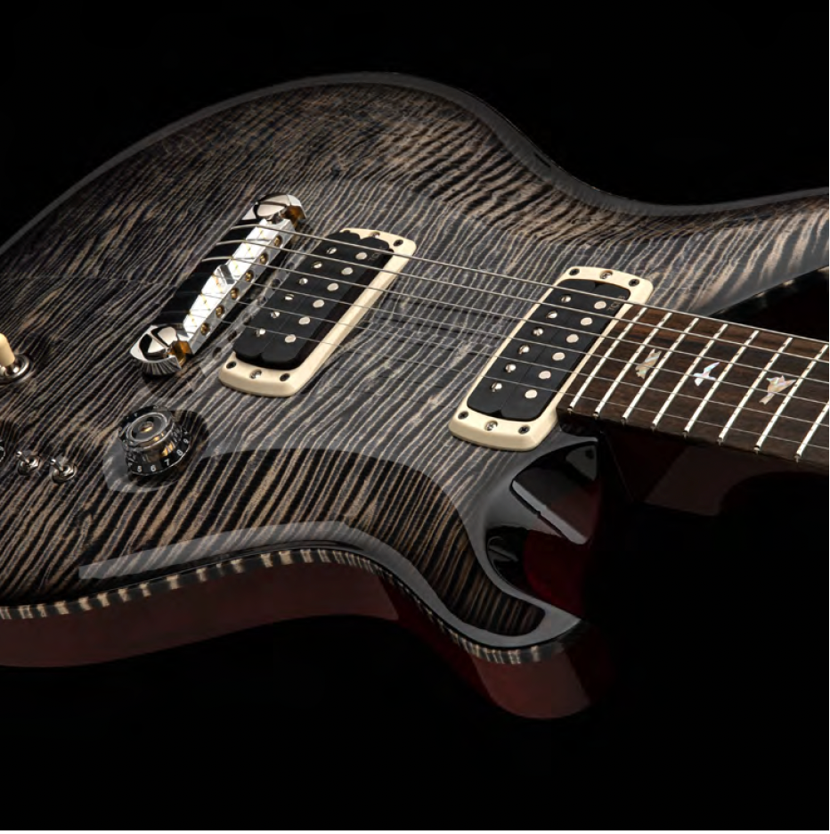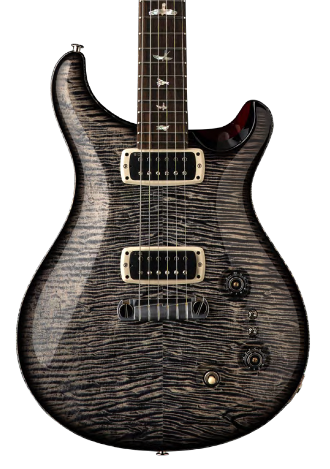Over the past year, Paul has road-tested this guitar, refining its design and tone. The result is an instrument that delivers aesthetic judgment and unparalleled performance. A visually stunning deep crimson back contrasts beautifully with the Private Stock-grade figured maple top in a charcoal microburst finish. The ripple abalone “Old School” bird inlays on the ziricote fingerboard add a touch of vintage elegance. The Charcoal Phoenix also features the newly updated PRS TCI pickups for 2025 and EQ mini-toggle switches. The TCI pickups are crafted with American Alnico magnets and slightly modified winding, wiring, and electronics specifications. These pickups have a clear, beautiful tone based on Paul's experience playing this guitar live and in the studio for more than a year. The EQ mini-toggles act as tuned high-pass filters when engaged, removing shelved low end and allowing the high frequencies through for more clarity and musical highs.