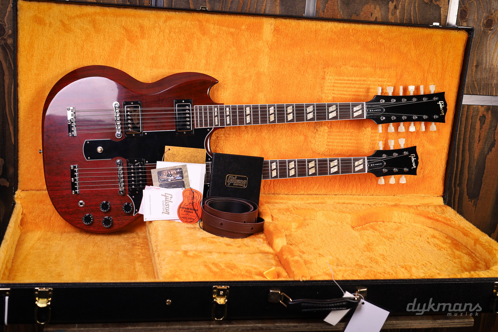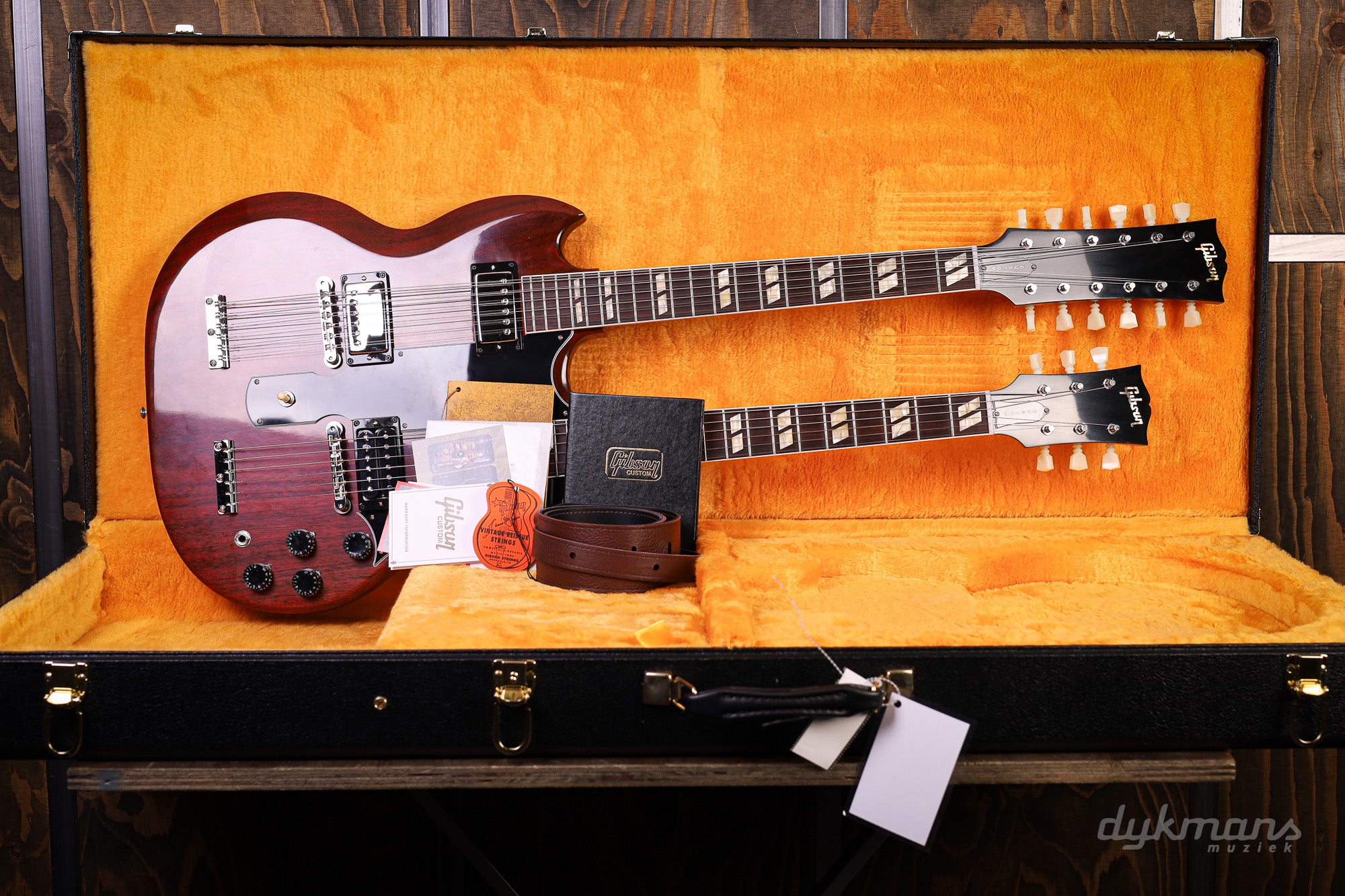 This is your chance to own a near-perfect clone of Jimmy Page's famous 1969 EDS-1275—exactly as it was originally delivered. The guitar comes in a Gibson Custom hardshell case, complete with a vintage leather strap and a certificate of authenticity featuring a photo by renowned photographer Barrie Wentzell.