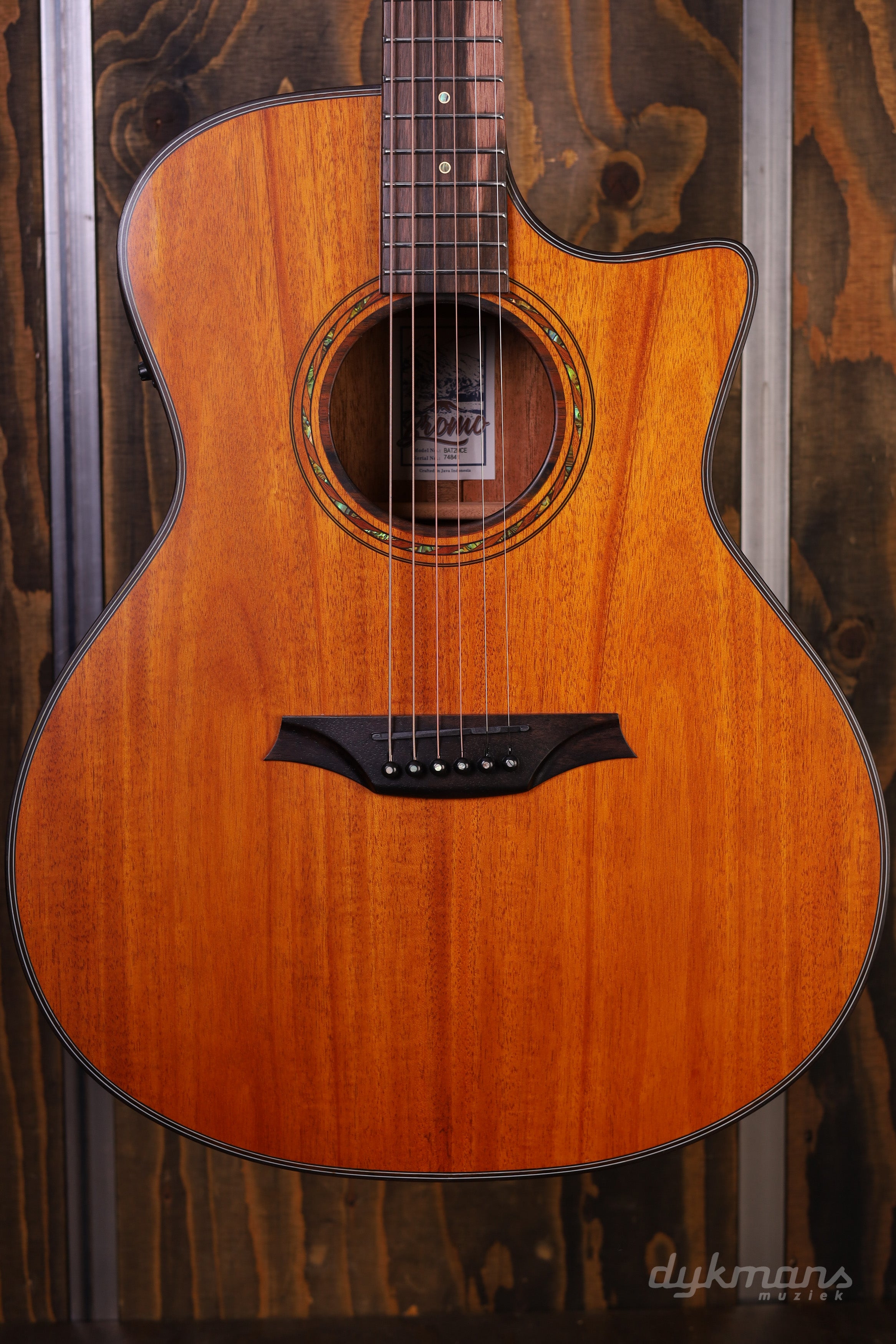 Stijlvolle Details, Uitzonderlijke Kwaliteit De BAT2MCE valt op door zijn elegantie en eenvoud. De palissander en esdoorn bindingen, een esdoorn middenstrip en abalone positiemarkeringen met messing ring geven de gitaar een tijdloze uitstraling. De mahonie/ebbenhout hals is niet alleen stabiel, maar ook soepel speelbaar, terwijl de Nubone onderdelen zorgen voor een zuivere intonatie.