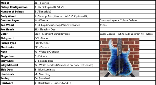 Dingwall Custom Shop Z3X-5 Midnight Burst Reverse