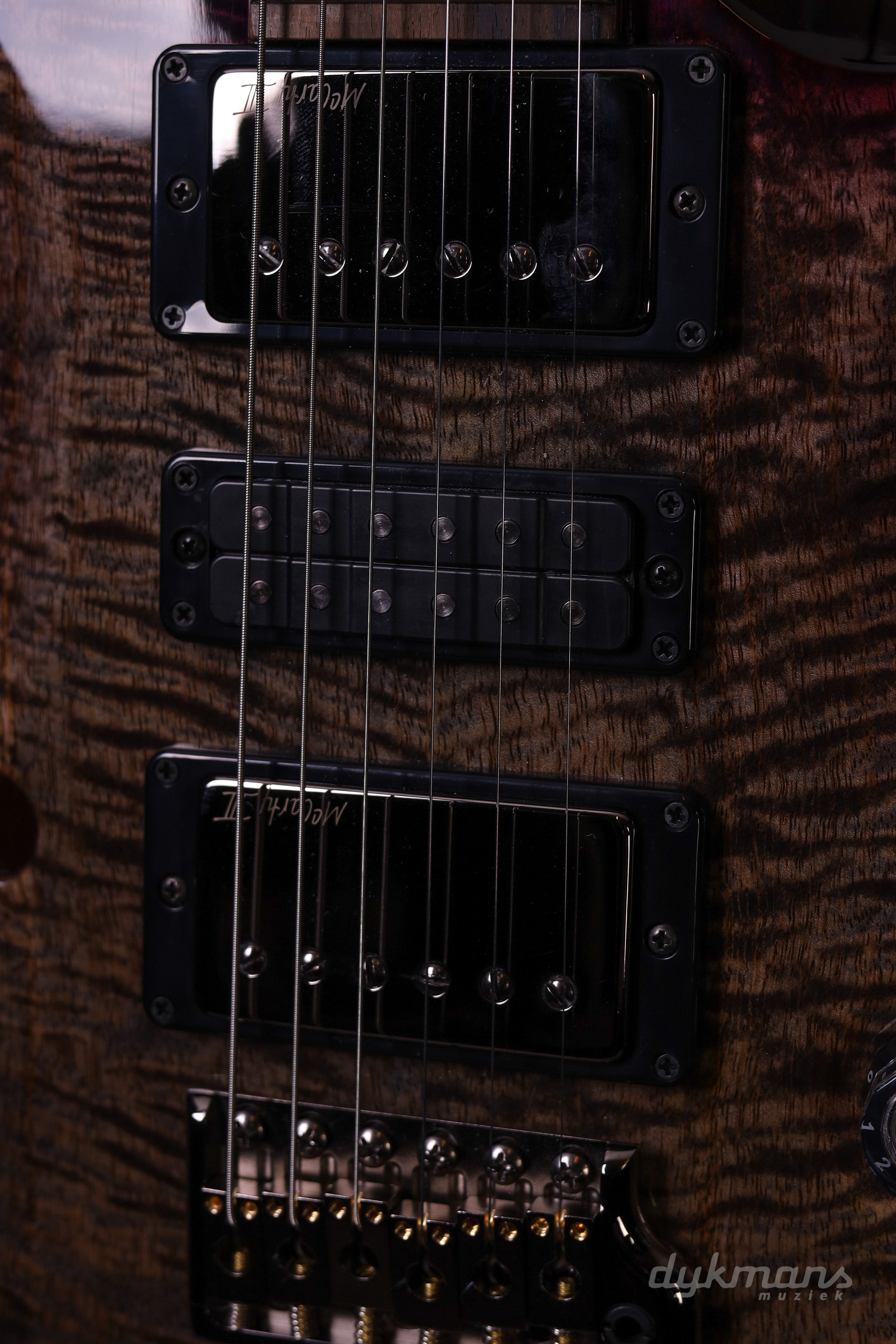 De basis is zoals je ’t verwacht: mahonie body en hals, 22 frets en een 25” mensuur. Speelt gewoon comfortabel en vertrouwd. Met de PRS Gen III tremolo en Phase III locking tuners blijft alles netjes op stemming, ook als je de tremolo goed gebruikt.