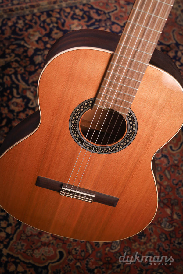 This nylon string Alhambra 1C is recommended by many music schools and guitar teachers in the Netherlands and Belgium because of its accessible playability. The acoustic guitar is part of Alhambra's student series. With these guitars, the action of the guitar (the distance between the string and the fretboard) is somewhat lower than with the guitars for the advanced guitarist.
