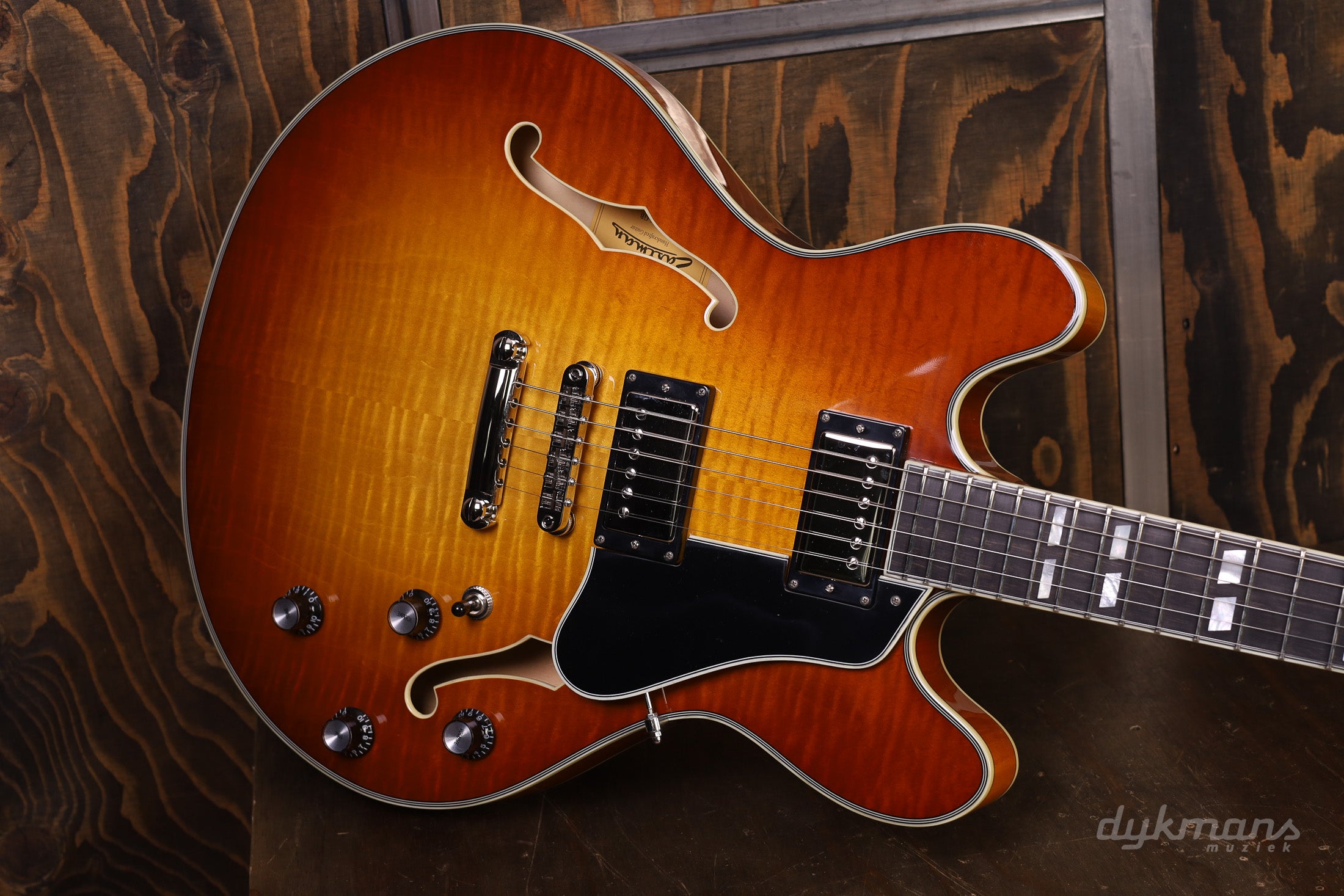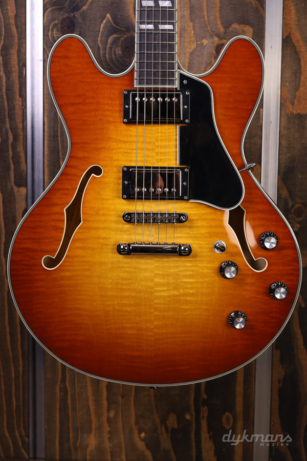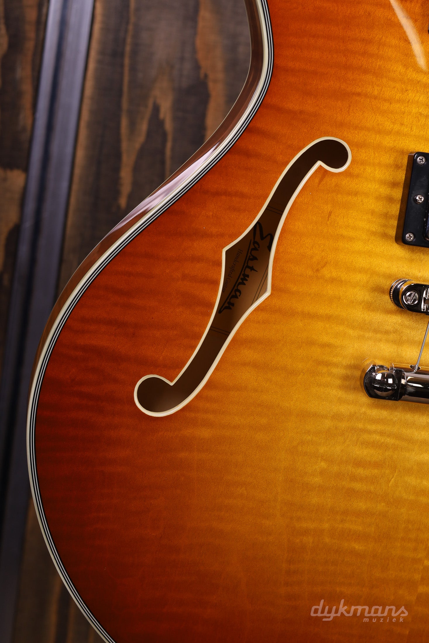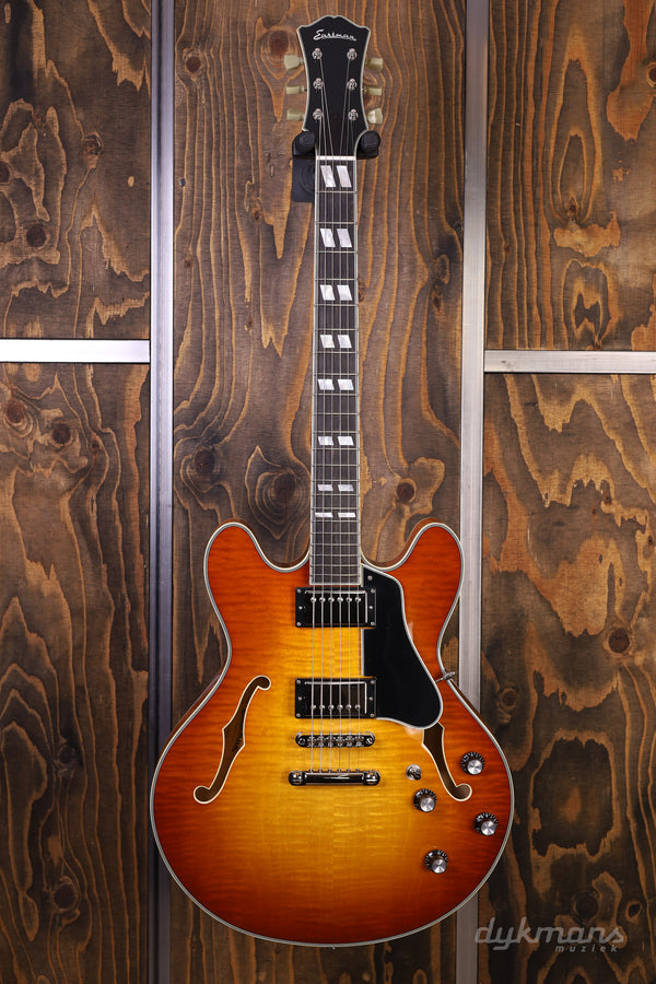 Beautiful Semi-Hollow from Eastman in classy Gold Burst finish, with Seymour Duncan elements!